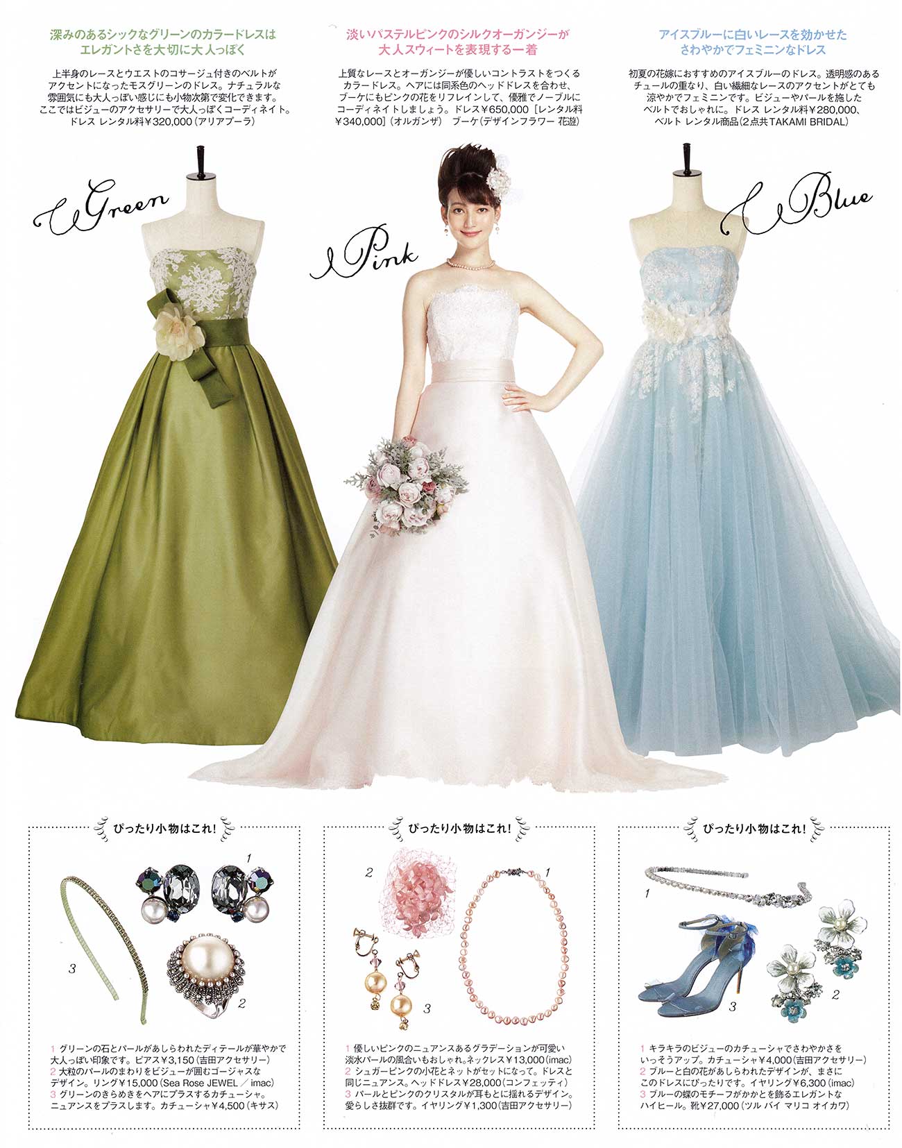 上質な素材や細やかなディティールが光る、さまざまなテイストのドレスをラインナップ。
