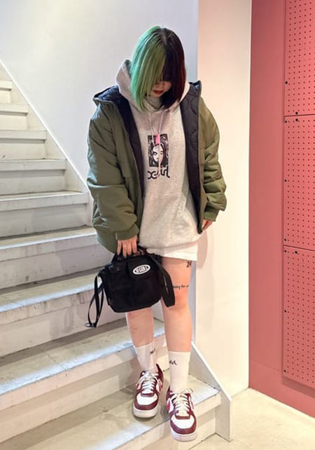 ガーリーテイストを取り入れたストリートカジュアル系。