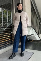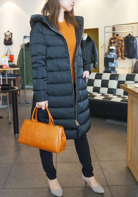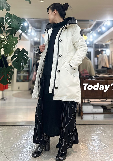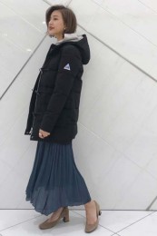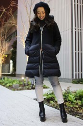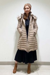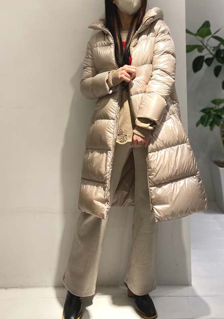 インポート素材ならではの高級感もあり、上品なオトナの雰囲気をまとったダウンコートに仕上がっています。