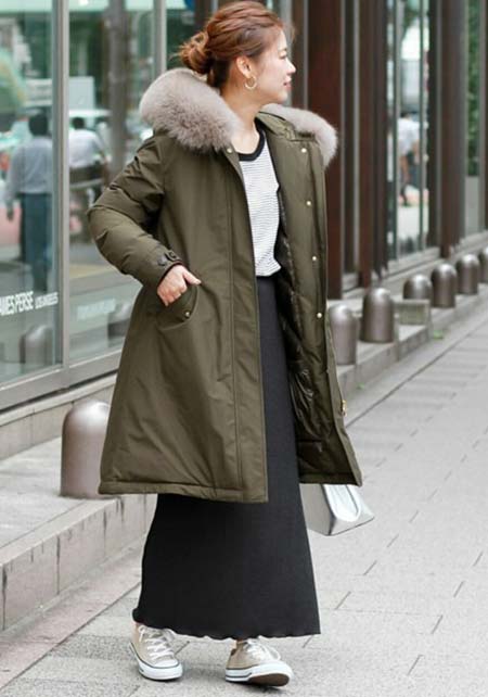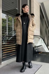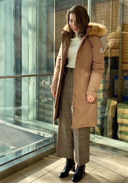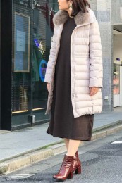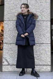 2019年登場。曲線美を意識したウエスト部分の縦ステッチにより、ロング丈でもスッキリとしたボディラインに。裾ジップの開け閉めでシルエットの変化も楽しめます。ポーランドラクーンのファーも取り外しができるのでシーンに合わせて調整を。