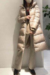 着ぶくれとは無縁、スリムシルエットのロング丈ダウンコート。