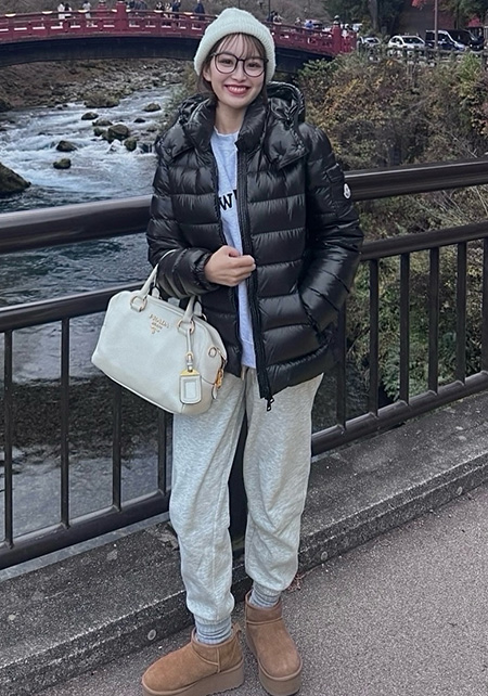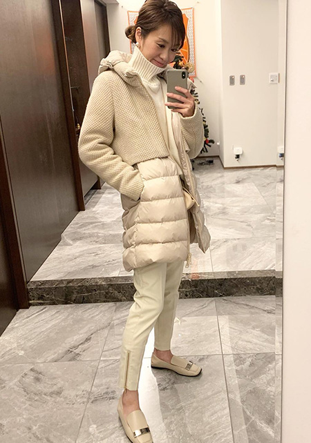 薄手のニットでもしっかり暖かく、とにかく軽いのも嬉しいポイントです。※ファー取り外し可能