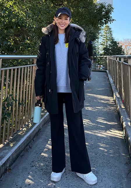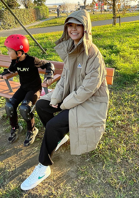 ママたちは学校行事などに着て行くのにも重宝。フードのつけ外しで印象を変えられるのも魅力。
