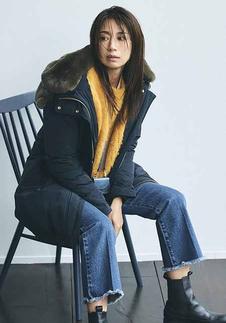 ウエストがシェイプされた美シルエットで着ぶくれせず、でも、しっかり暖かい。カジュアルアイテムなのに女らしく着られる。コンサバ派向けの一枚。