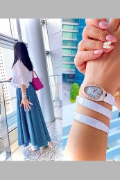 全モデル、クォーツムーブメントが搭載され、アラビア数字とローマ数字のコンビによる、洗練されたデザイン。そして一番の特徴は、手軽に交換可能なストラップの品揃え。「服と同じように、気分によって時計のストラップも着替えたい」というわがままな女心にぴったりなウォッチです。