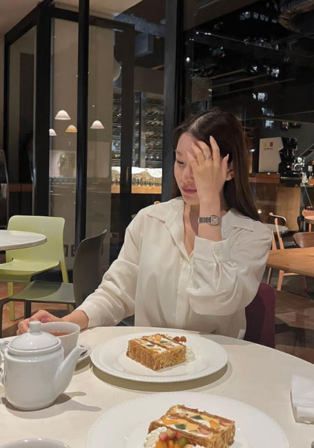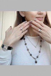サテンリボンのように軽やかなミラネーゼメッシュブレスレットと、美しく配されたダイヤモンド、マザーオブパールのグレーのフェイスが生み出す存在感が絶妙。