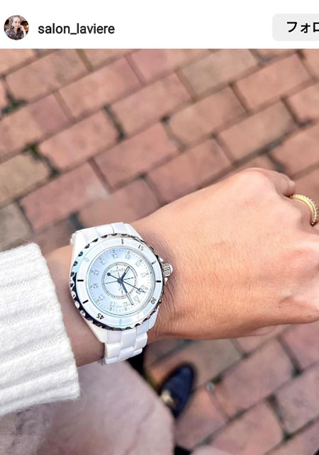スポーティウォッチも『シャネル』の手にかかれば途端にエレガント。「J12」は2000年に誕生し、傷に強いセラミックを使用して高級時計に革新をもたらした名作。写真は数あるモデルの中でも人気の高い、シンプルフェイスのホワイト33mm。