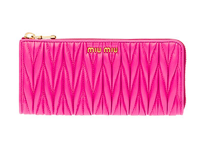 ミュウミュウの人気ライン「マトラッセ」のキュートな長財布。