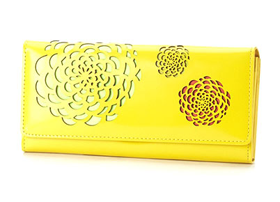 ガラスレザーをベースに、ローズの形にカッティングして作られた長財布。
