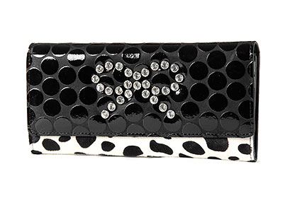 クリスタル調ボタンが素敵♪。オシャレよりで選びたいお財布です。