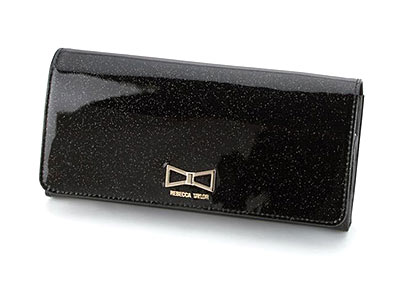 輝くラメを散りばめたエナメル素材のガーリーな長財布☆