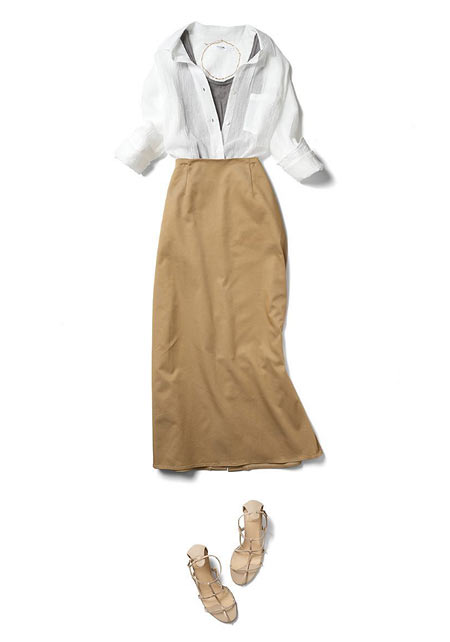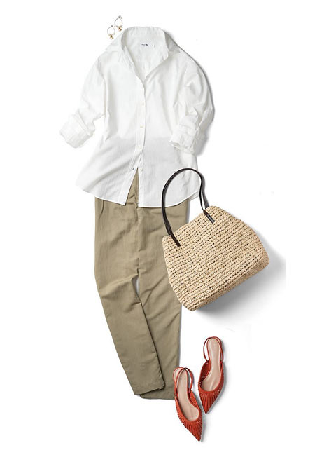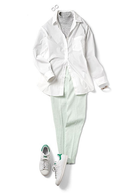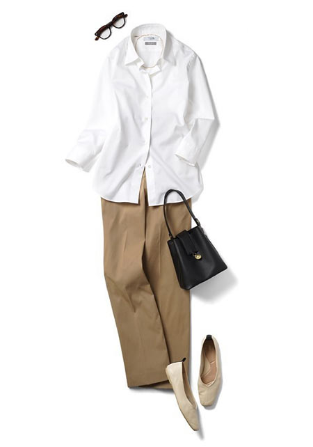 『シャツの大定番!』白シャツを使った「春・夏・秋」のコーディネートをまとめています。