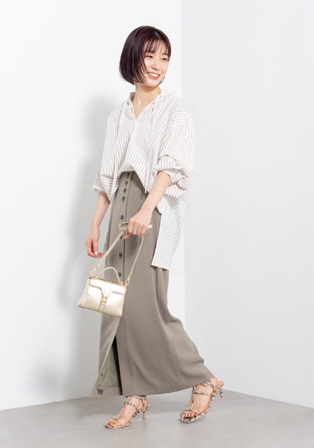 ナラカミーチェのシャツ×おしゃれな着こなし