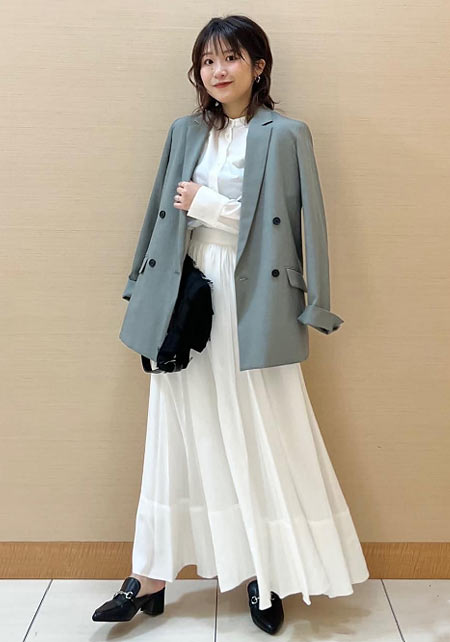 スカートと合わせて女性らしい着こなしにしたり、ジーンズでカジュアルめにもできる、意外と万能なアイテムでもありますね。