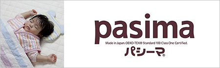 福岡県うきは市で作られている「pasima」は、医療用脱脂綿を高密度なガーゼで挟んだキルト生地。薬剤や糊料を一切使用せず、繊維製品の国際安全規格「エコテックススタンダード100」で最も厳しい基準の「クラスI」を取得しています。吸水性と速乾性が高く、洗うほどにふっくらと膨らんで、やわらかさが増していきます。