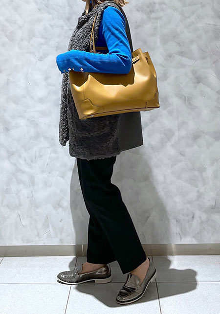 カジュアルな中にもシックで高級感のあるトートバッグ。