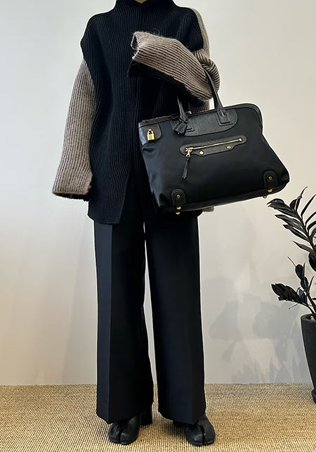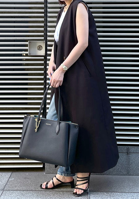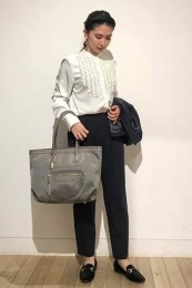 たくさん収納してもジップトップで荷物がキープでき、セキュリティも安心。なによりエレガントな雰囲気は通勤に◎です。