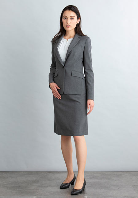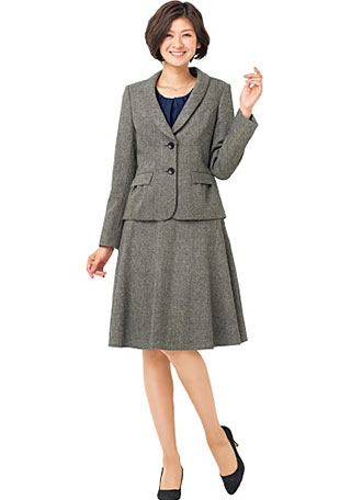 「洗濯できるのが嬉しい♪」シャープな印象に見えるジャケット×スカートのスーツセット。落ち着きのある色味は何とでも合わせやすいです。