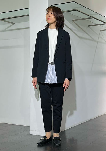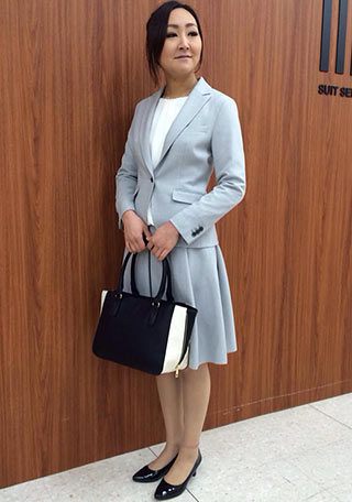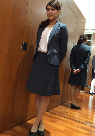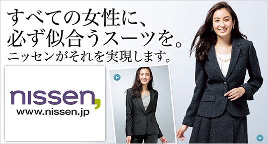 152cmくらいの小柄な女性と、165cm~180cmくらいの背が高い女性の方に向けたスーツ。一般的には難しいサイズもニッセンなら揃っています!