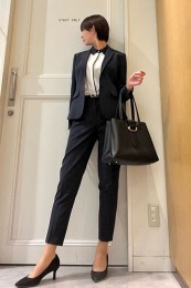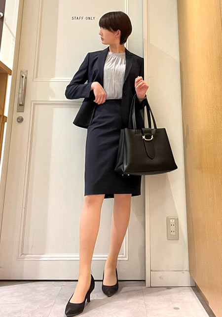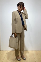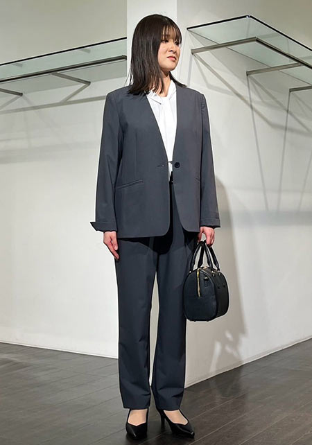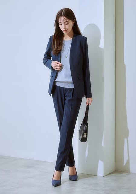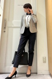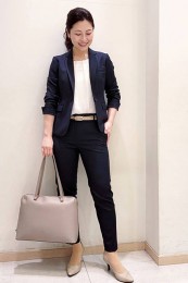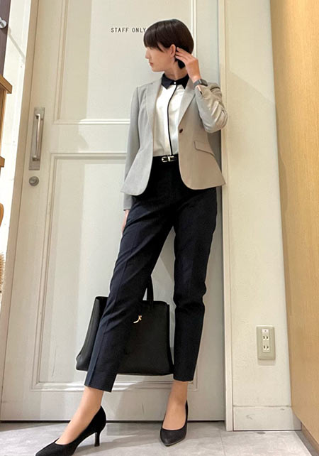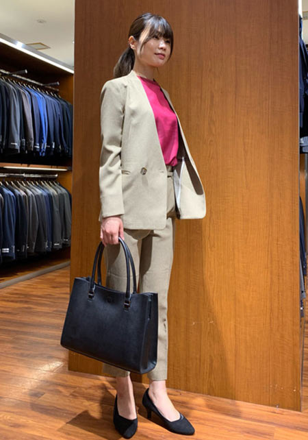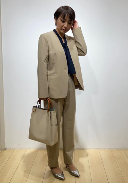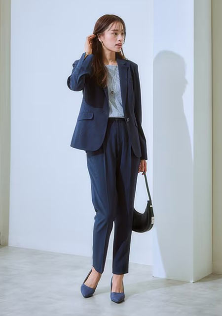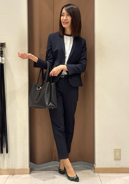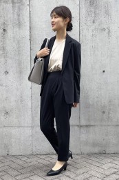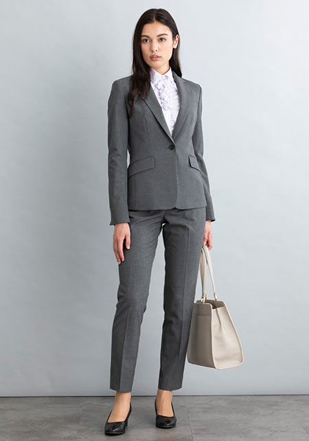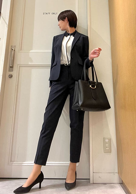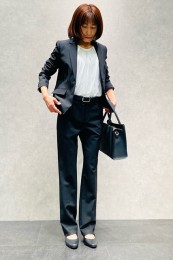 着るだけで”デキるビジネスウーマン”を演出してくれる、スッとしたシルエットのマニッシュなスーツ。パンツなら外勤スタイル。スカートなら内勤スタイルに。