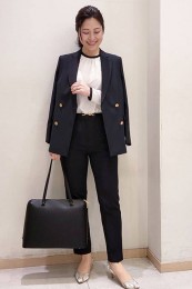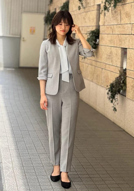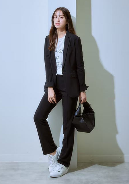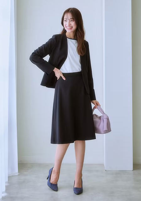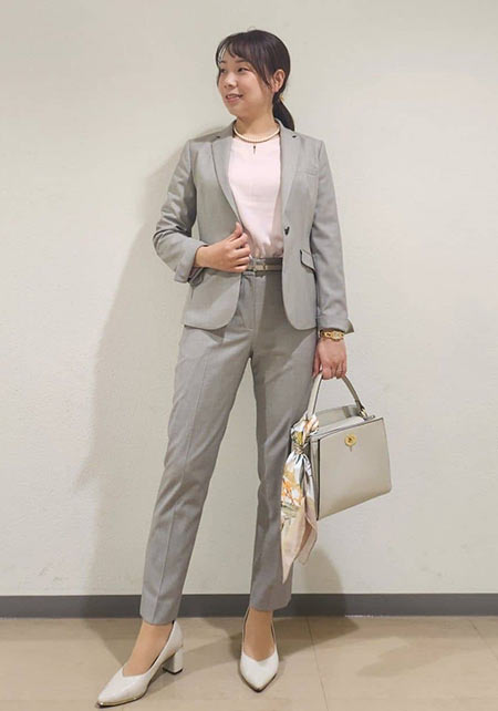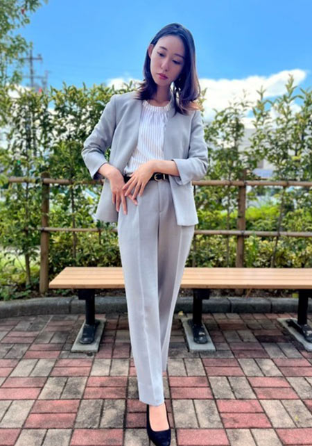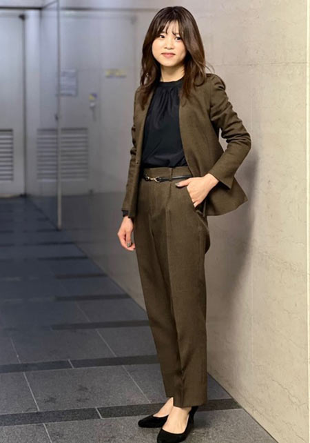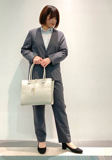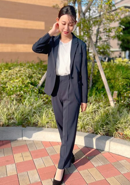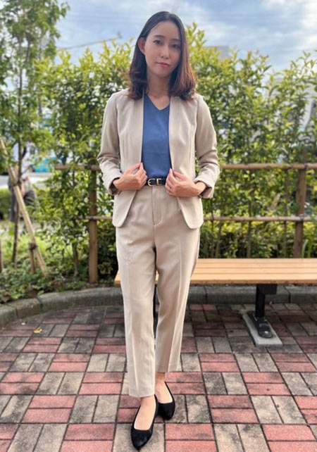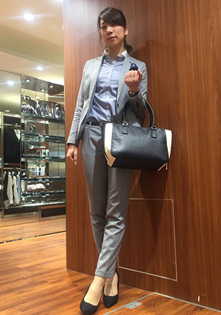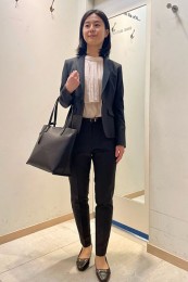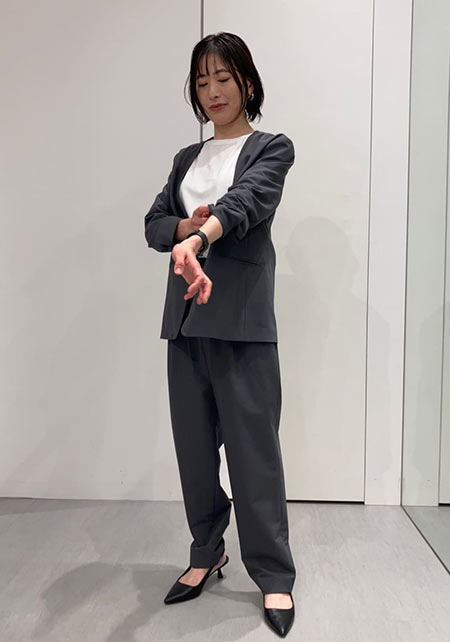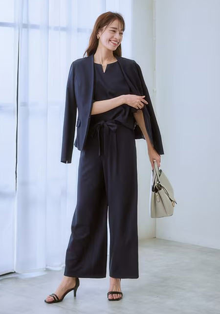 着るだけで”デキるビジネスウーマン”を演出してくれる、スッとしたシルエットのマニッシュなスーツ。パンツなら外勤スタイル。スカートなら内勤スタイルに。
