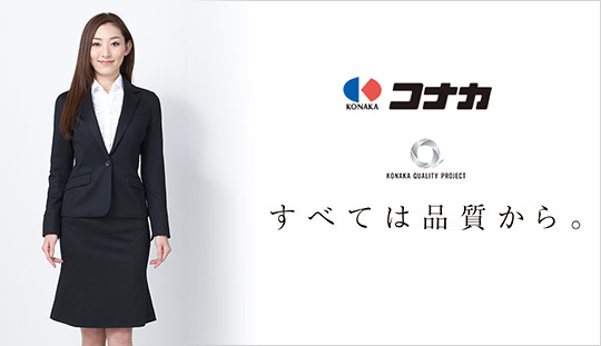 コナカは「すべてはクオリティから」をテーマに、高品質な素材と機能に優れたスーツを提案している業界シャア3位の有名ブランド。
