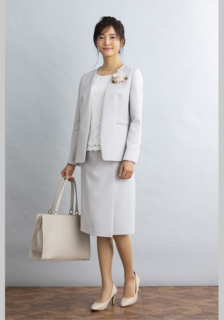 きちんと感とフェミニンさをMIXした「シルバーライン」のスーツ。パンツとスカートがそれぞれ付いてこのお値段! 流通まで徹底しているからこそできる価格です。