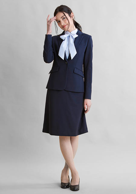 レディーススーツは大きく分けて2ラインあり、シャープなラインと美しいバストラインを両立したマニッシュ系「ブラックライン」と、メリハリのある女性らしい曲線美を追求したフェミニン系の「シルバーライン」の2種類をメインに展開しています。