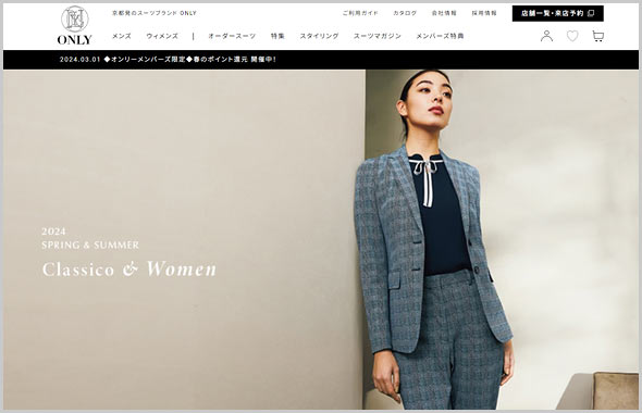 20代後半からオススメしたいのが「ONLY」。国内に自社工場を備える、品質にこだわった京都発のスーツブランドです。