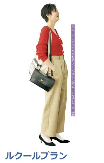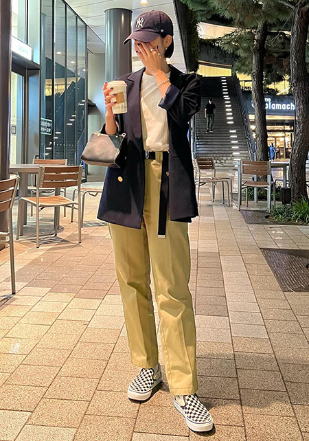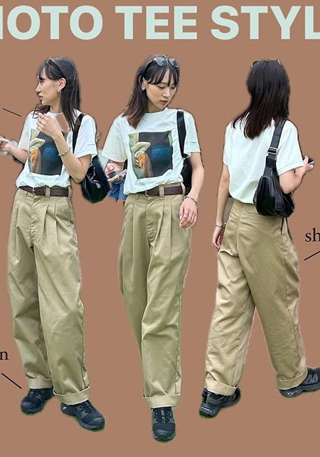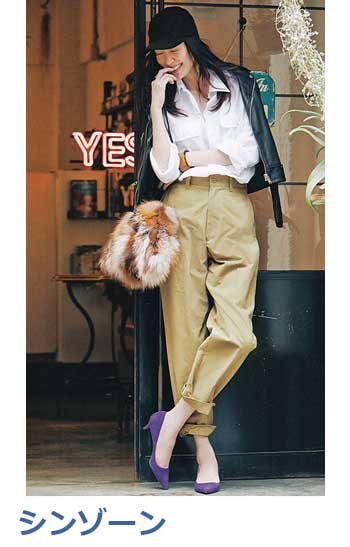 チノパン&手持ちのパンツでもOK。着こなし方、小物の合わせ方にほんの少し工夫を加えるだけで、いつものパンツスタイルも見違えるほど脚長に変身!