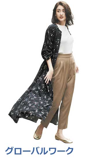 グローバルワークといえばこれ、というほどリピーター続出の大人気テーパードチノ。脚のラインを拾わず誰でもすっきりはきこなせるシルエットと、オンオフどちらも対応してくれるキャパの広さも魅力! ゴムウエストではき心地もパーフェクト♪