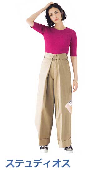 毎年ひねりのあるデザインチノが話題を呼ぶ、ハイクオリティ&ロープライスで大人女子から絶大な支持を集めるブランド『ステュディオス』。スタイルよく見えるのはもちろん、女らしさも持ってくれるのが魅力。