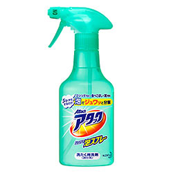 洗濯には中性洗剤を使用します。写真はスプレータイプで泡を飛ばすことができるもの。