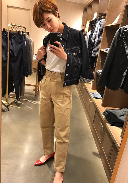 左)トップスの裾を全部出すと野暮ったい印象に。“トップスインですらっと”が主流。