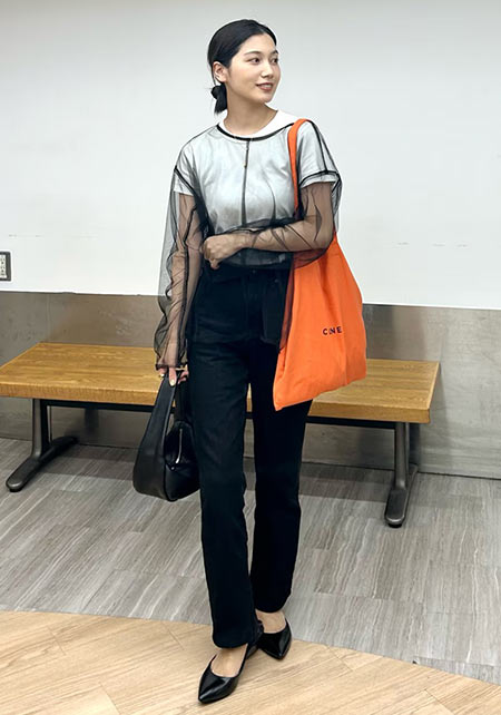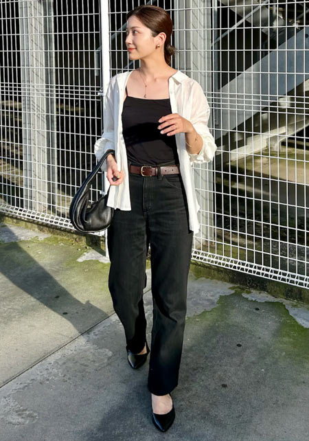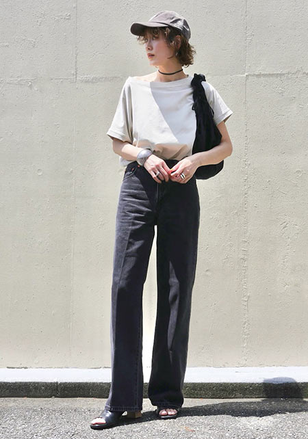 ダボダボせずにはけるのがうれしい細みのストレート。ブラックデニムも旬!