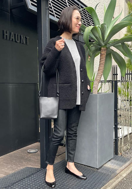 〈コーデ〉短め丈だからフラットシューズとの相性も◎です。