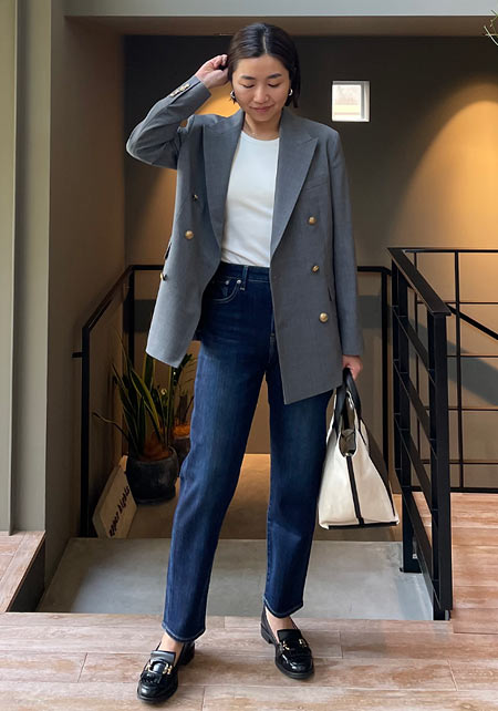 〈コーデ〉今年の流れでもあるロールアップしないジャスト丈を選ぶと今年らしい装いに。
