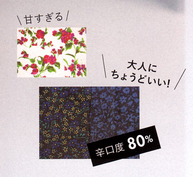エレガントに転びがちな発色のいい色は避け、黒やネイビー、くすみ色といった派手すぎない地色なら花柄でもキリッと見せることができる。