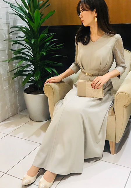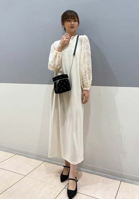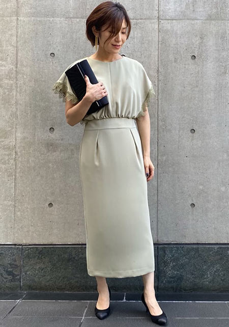 少しデザインのあるものが、メリハリが出て好バランス。袖のレースが視線を上に集める効果もあります。