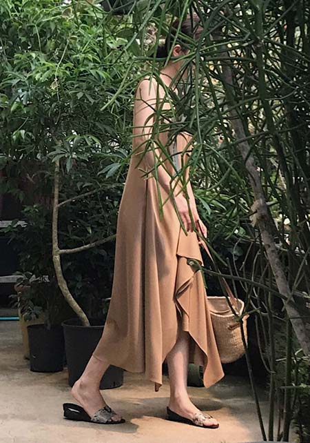 ふんわりとナチュラルなマキシワンピはエブールを象徴するアイテム。一見素朴ながら、たっぷりとギャザーを寄せたぜいたくな生地使いで、ドラマティクに広がるボリュームデザイン。さらりと袖を通すだけでコーデのが決まるから、週末だけでなく、旅先のワードローブにもぜひ組み込みたい。