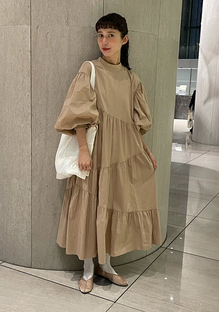 オシャレな人が注目している『カーサフライン』。こんなボリューミーなティアードワンピを嫌味なく着こなせるのもSサイズの特権。