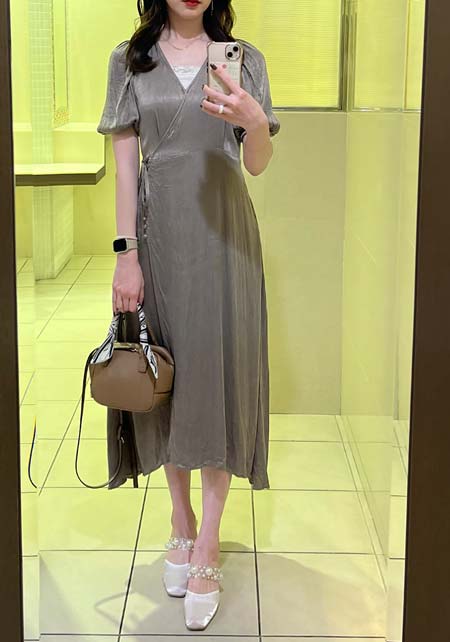 体のラインを拾わず、ふわっと包んでくれるラップワンピ