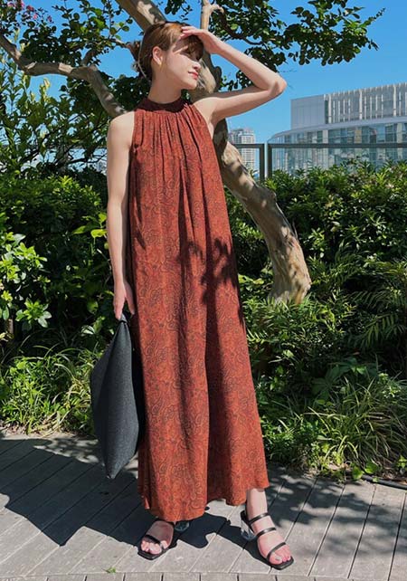 花柄が派手と感じる大人女子も、渋い色のボタニカル柄なら街に浮かずトライしやすい。大柄のプリントでもリゾート感が出ずに洒落着として成立するので、大人に優しい一枚。