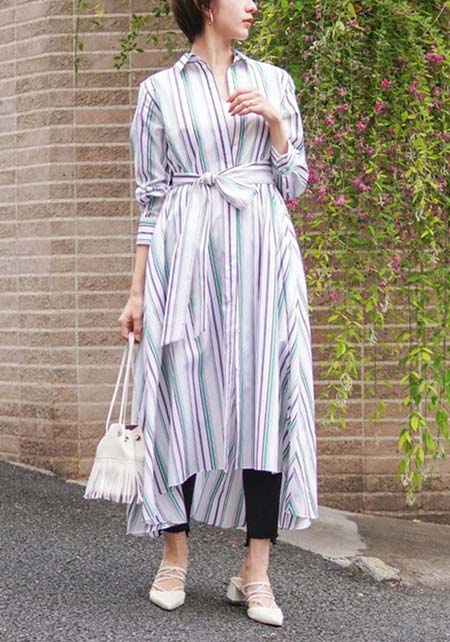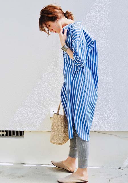 ロング&ワイドな身幅や、ユーモラスなシルエットなど、辛口かつクールなストライプ柄がお洒落に見える。