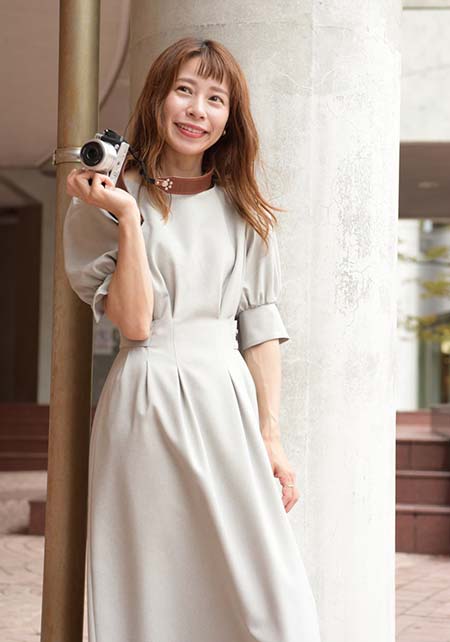 貧相に見えてしまうのがお悩みの小柄さんには、ふわっとしたコクーンシルエットやボリュームスリーブがおすすめ。華やかな印象も手に入り、フラットでもヒールでもバランスよく着こなせます。