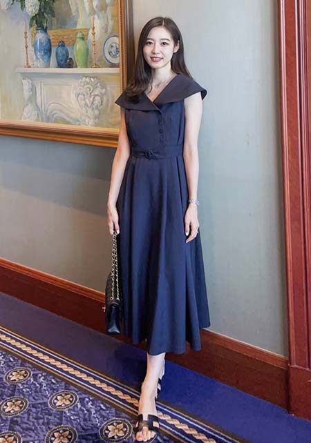 30代・40代が着れる甘さ加減がちょうどいい…。こちらはハリのある生地とタックス使いで、ドラマティックに仕上げたネイビーワンピ。可愛げを大人っぽく昇華したミニマルなデザインは、誰からも愛されるはず。