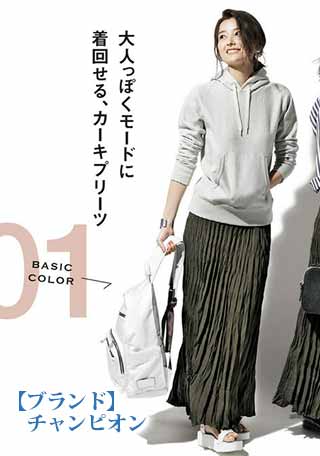 パーカー&スウェットでおなじみのアメリカンカジュアルブランド『チャンピオン』。ベーシックで着まわしやすいのでお出かけ時はとくにマスト。また、着心地がよくて洗濯してもヨレにくい♪ そんなところも人気のヒミツです。