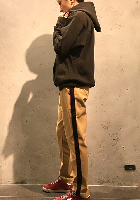 パーカーは「ジッパー」と「プルオーバー(雑誌ではフーディとも呼ばれています)」の2種類ありますが、いま流行しているのはプルオーバー。ですので、今っぽく見せるなら断然プルオーバーです。