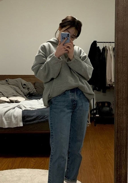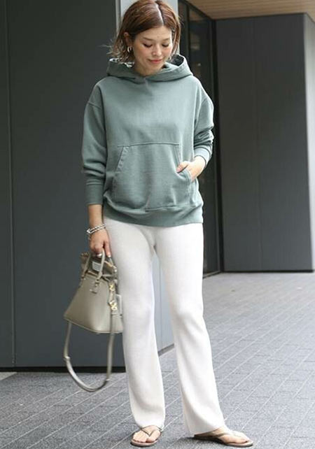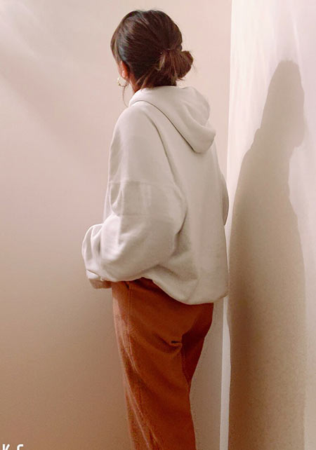 しっかりとした厚めの生地でルーズになりすぎず、上品に着られる! とおしゃれ関係者にも大人気のパーカー。