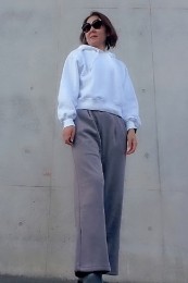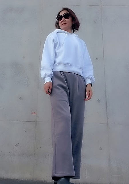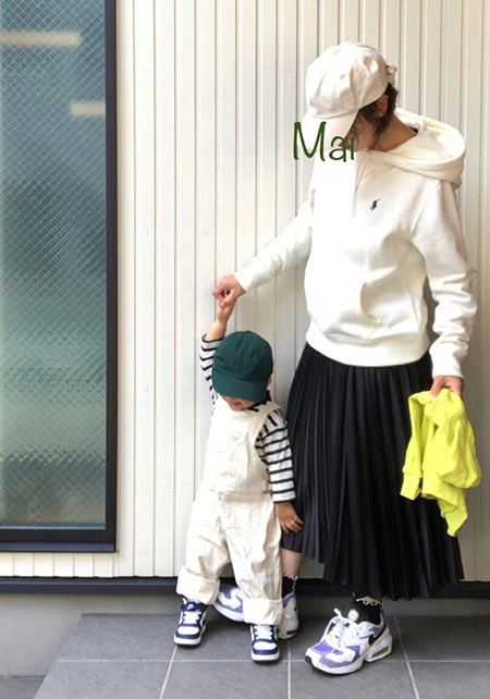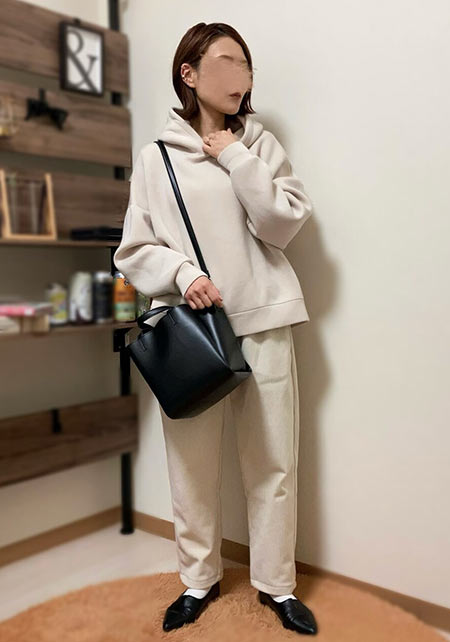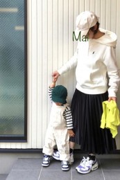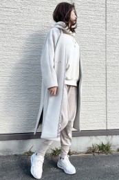 ポケットなし、紐なしのミニマルデザインはキレイめ派に最適。こちらは「ワイドな身幅+ラグランスリーブ」でリラックス感があり、お子さんとの公園コーデとかにも重宝します♪